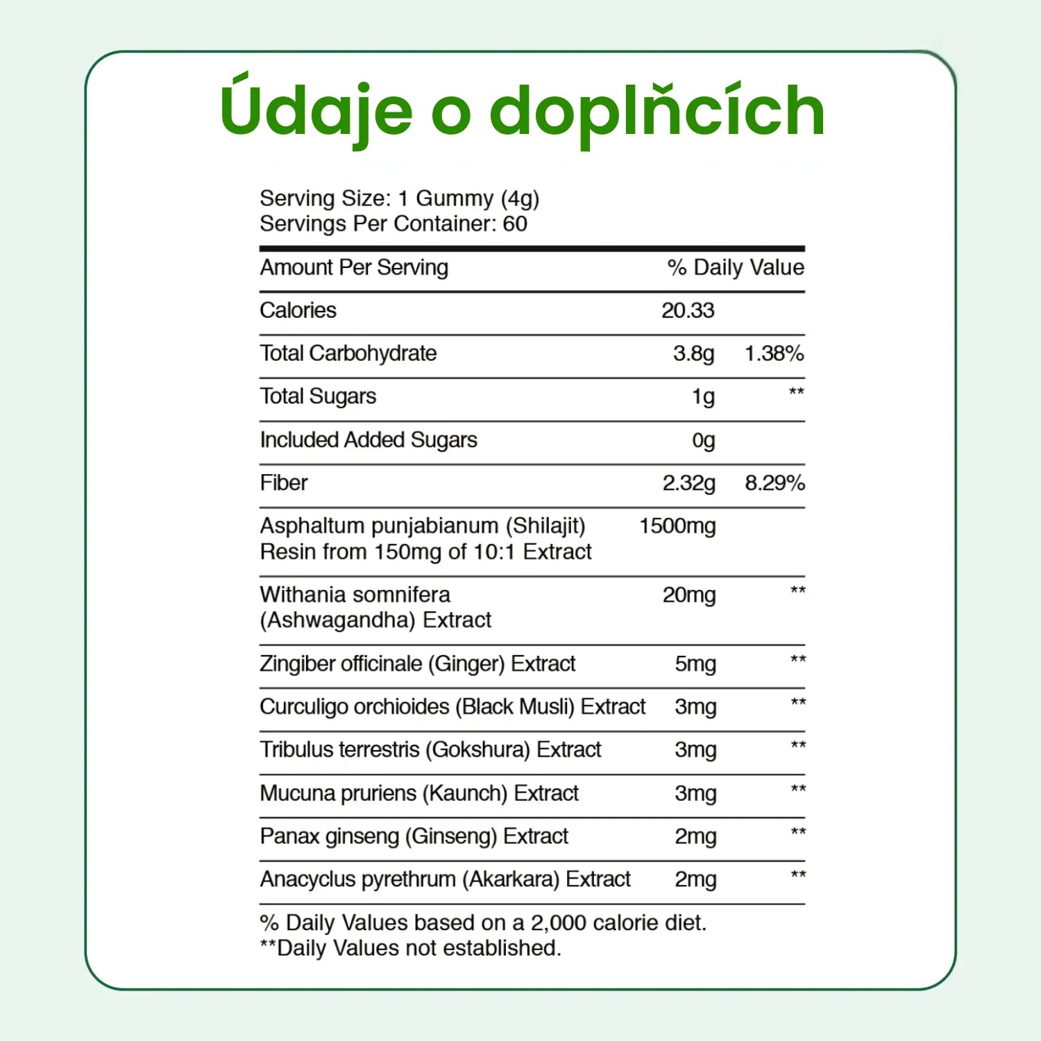 Doporučujeme 1 želatinový bonbon (gummy) denně, 7 dní v týdnu. Výsledky se liší, ale většina mužů zaznamená zlepšení zdraví a energie za 6–8 týdnů.