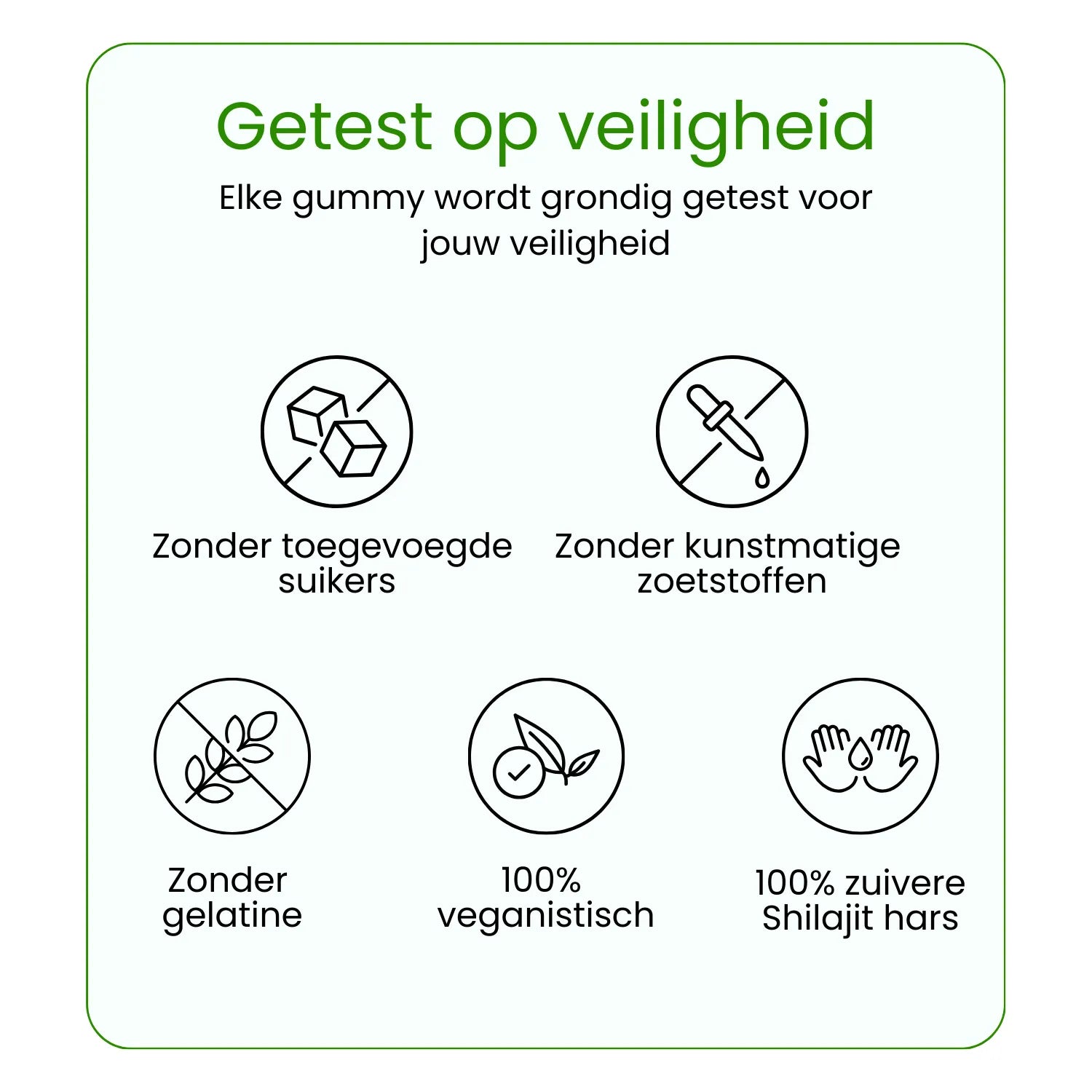 De echte transformatie vindt echter in de loop van tijd plaats—naarmate de adaptogenen en Shilajit-verbindingen zich in je lichaam ophopen.