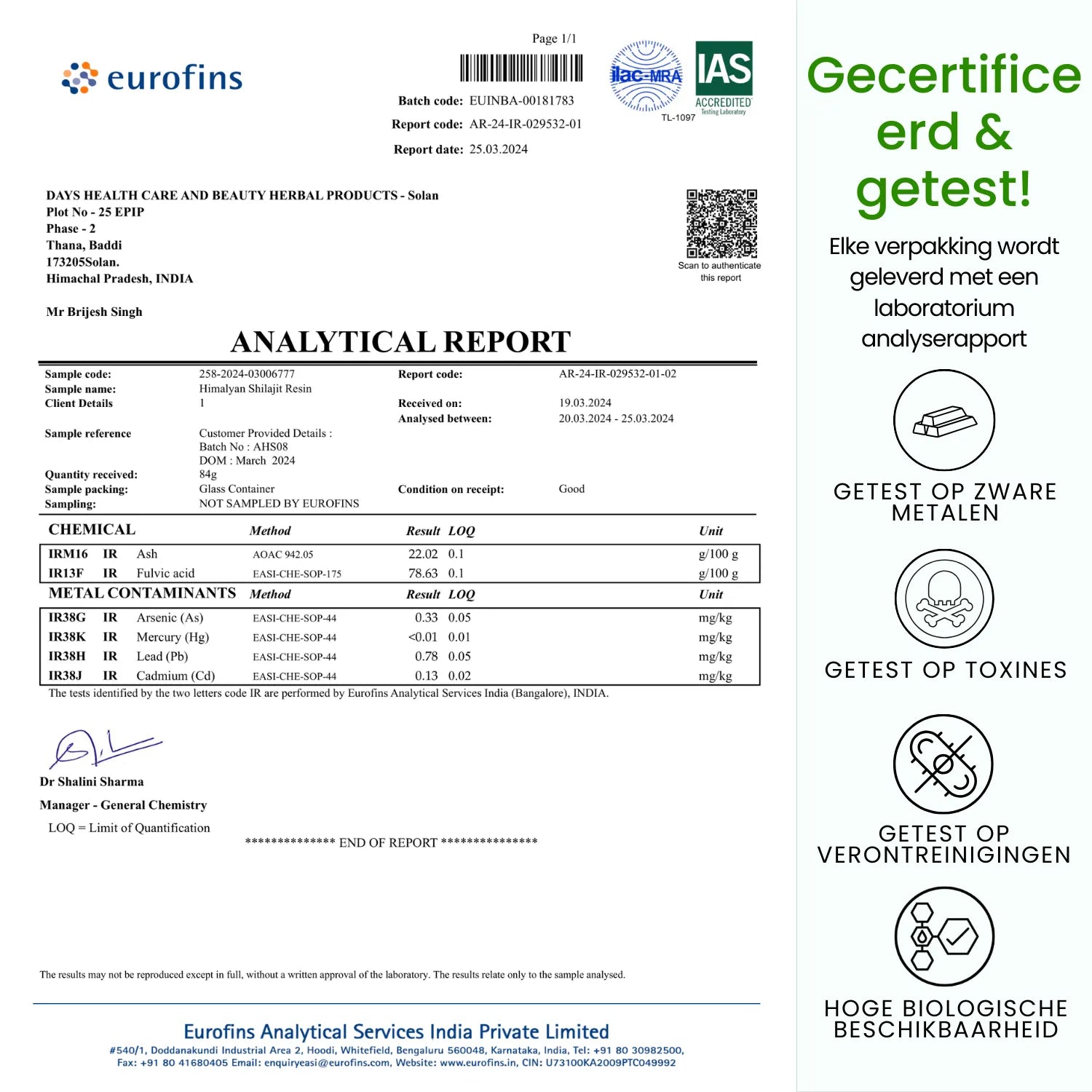 ✅ Geauthenticeerd Oorsprongsmateriaal - 100% authentieke Shilajit met geverifieerde actieve bestanddelen