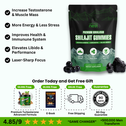 Wellness Nest™ Shilajit Gummies are a clean, lab-tested vitality formula designed to naturally support your energy, focus, hormones, and performance—without the mess of raw resin.