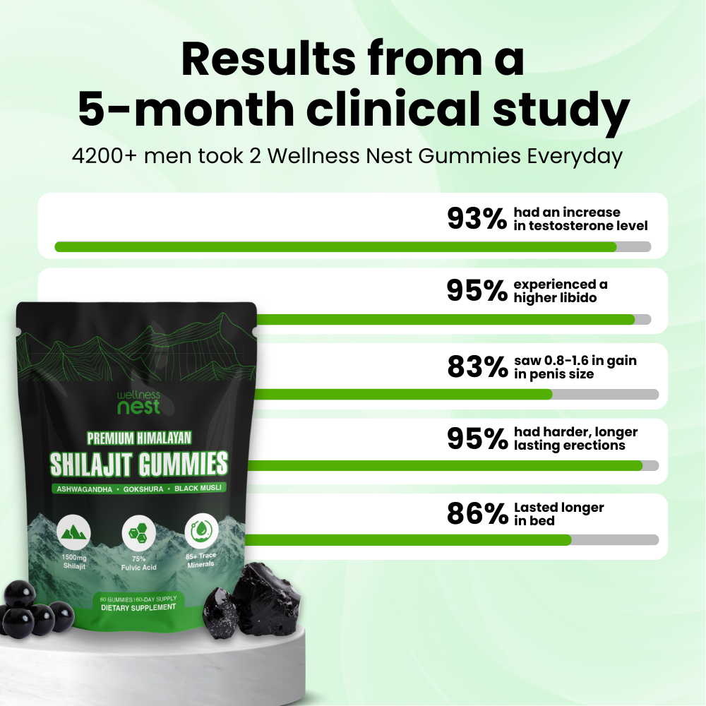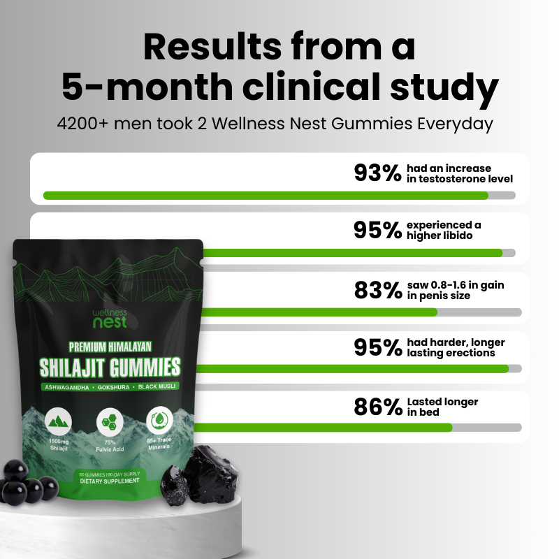 Dans un essai clinique, des participants masculins âgés de 45 à 55 ans ont été divisés en deux groupes : l’un a reçu une dose de 250 mg de Shilajit purifié deux fois par jour, tandis que l’autre a reçu un placebo.