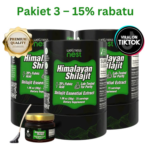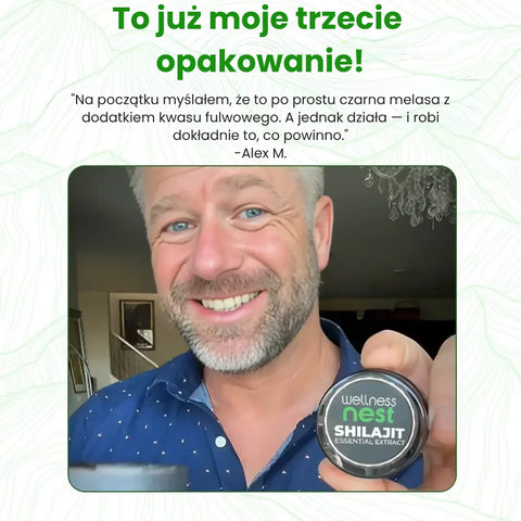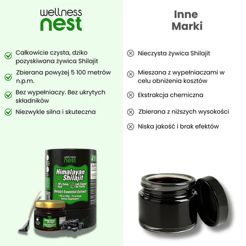 Jesteśmy tak pewni, że żywica Shilajit od Wellness Nest poprawi Twoje samopoczucie i poziom energii, że oferujemy 100% gwarancji zwrotu pieniędzy — bez zadawania pytań.*