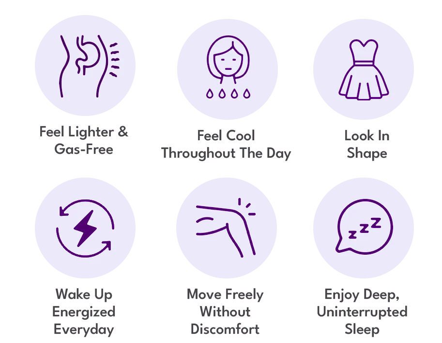 Occasional digestive issues after 40 often prevent women from enjoying life to the fullest. MenoMate's formula is specially designed to support a healthy digestive system and keep the tummy calm and relaxed.