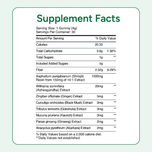 I tipici stimolatori si basano su caffeina o ingredienti sintetici per effetti rapidi. Le Caramelle Gommose di Shilajit di Wellness Nest agiscono nutrendo i tuoi sistemi endocrino e surrenale — aiutando a regolare il cortisolo, supportando l'equilibrio degli estrogeni e riducendo la fatica in modo naturale. Invece di crollare, sentirai un'energia più costante, una concentrazione più acuta e una vitalità ripristinata — specialmente durante i cambiamenti ormonali come PMS, post-partum o menopausa.
